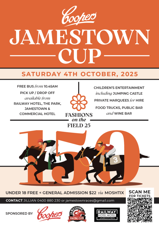 Find your fascinator and enter Fashions on the Field, or wear your boots and visit the horses – there’s no dress code here. Jamestown Cup Day is a relaxed picnic race meeting with strong fields, total broadcasting, multi-wagering, SKY racing, plus beer and wine bars.